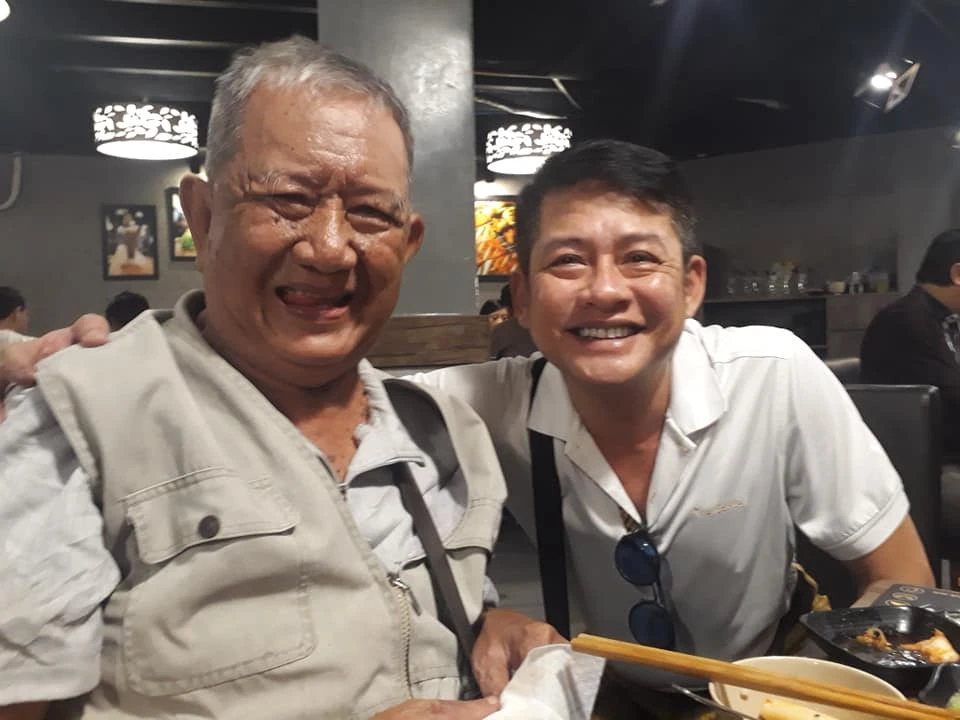 Nghệ sĩ Mạc Can vui khi Tấn Beo chào hỏi.