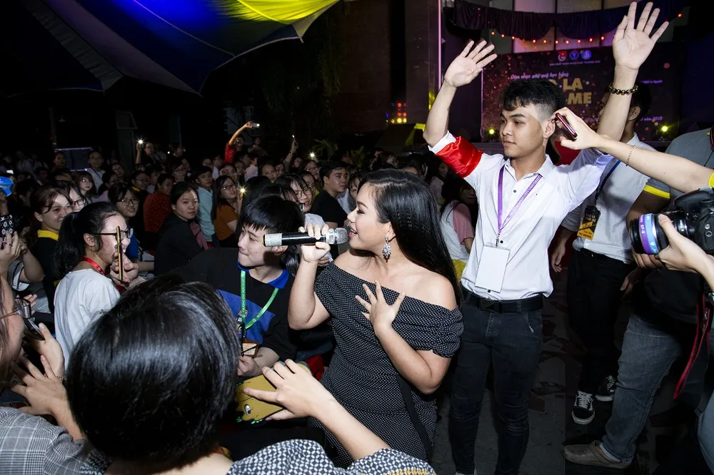 Ca sĩ Phương Vy hát “Lúc mới yêu”, “Yêu đời” với hàng trăm sinh viên.