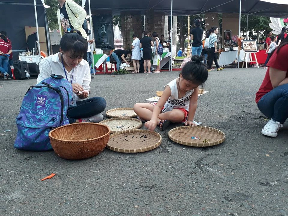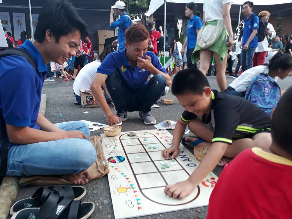 Trẻ em đến ngày hội với trò chơi dân gian Ô ăn quan.