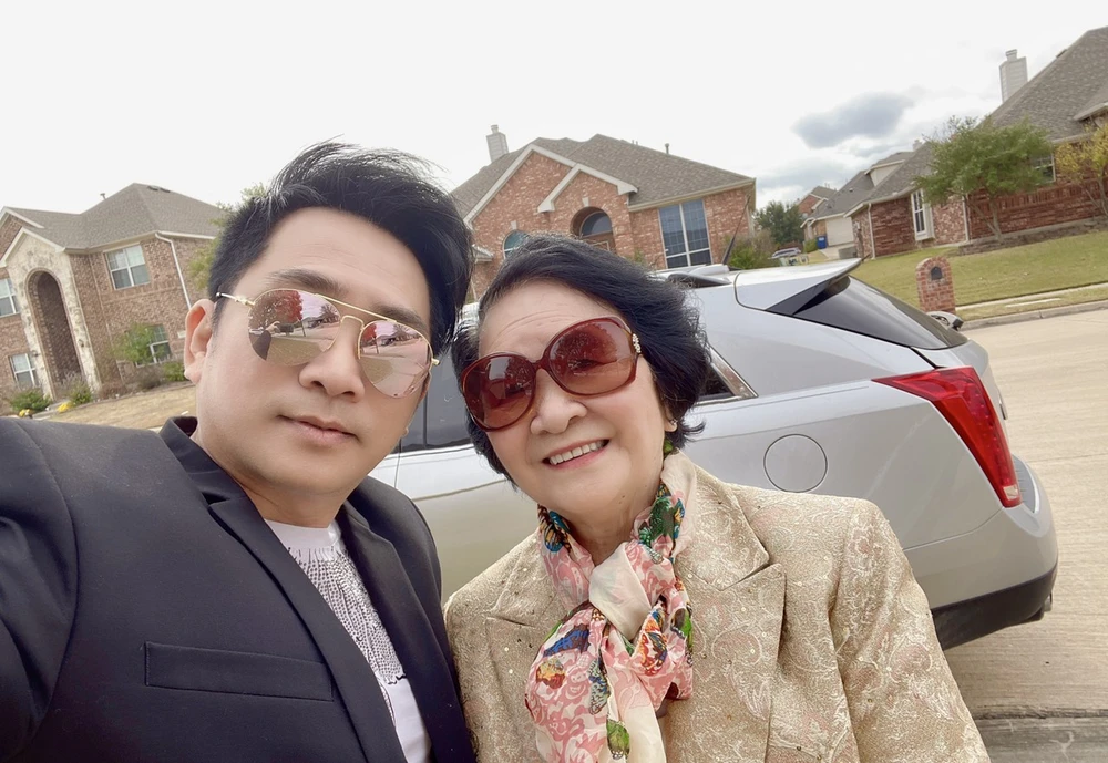 Ca sĩ, nhà biên tập Quang Thành bên mẹ. Ảnh: NVCC