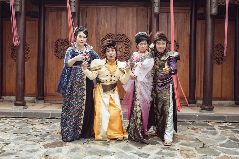 Bốn nghệ sĩ gạo cội Hồng Vân, Minh Nhí, Thanh Thủy, Đức Hải trong tạo hình cổ trang kiếm hiệp.