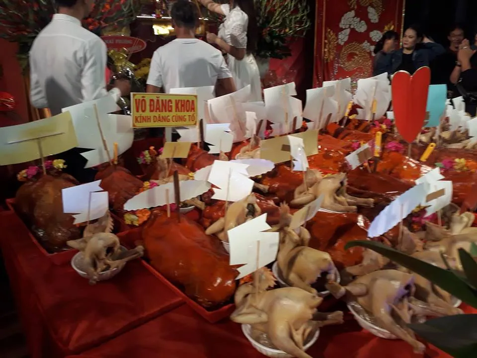 Nghệ sĩ Ngọc Duyên đang chia lộc Tổ.