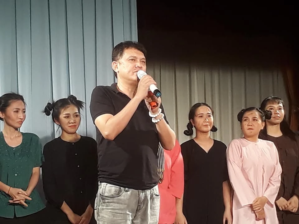 Nghệ sĩ Hữu Châu chịu trách nhiệm chính ở đêm thi học kỳ môn tiếng nói sân khấu do anh giảng dạy.