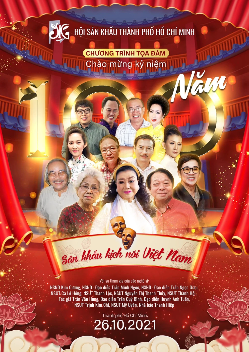 Hội Sân khấu TP.HCM tổ chức chương trình Tọa đàm nghệ thuật ôn lại những thành công và dấu ấn đã đạt của sân khấu kịch nói Việt Nam nói chung và sân khấu kịch nói tại TP.HCM nói riêng. Chương trình nhằm chào mừng kỷ niệm 100 năm Sân khấu kịch nói Việt Nam.