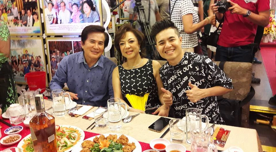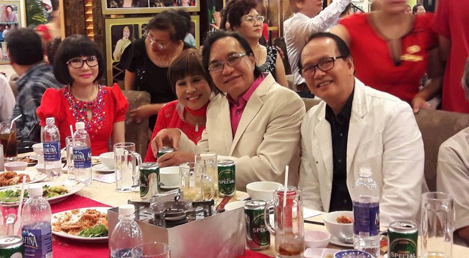 Nghệ sĩ Thanh Phú - bìa trái - người vẽ mặt đầu tiên cho nghệ sĩ Minh Vương.