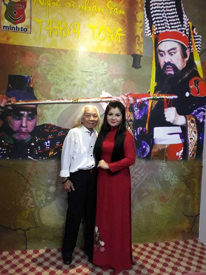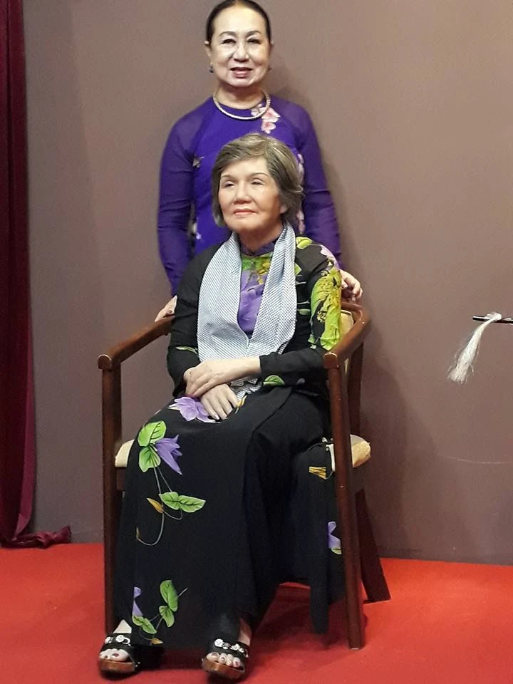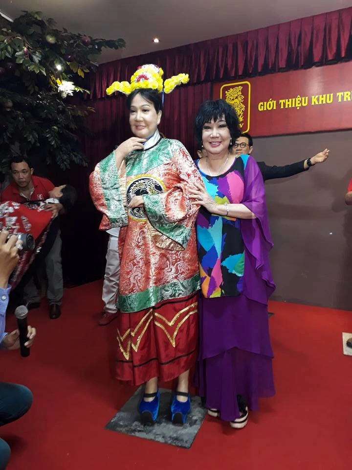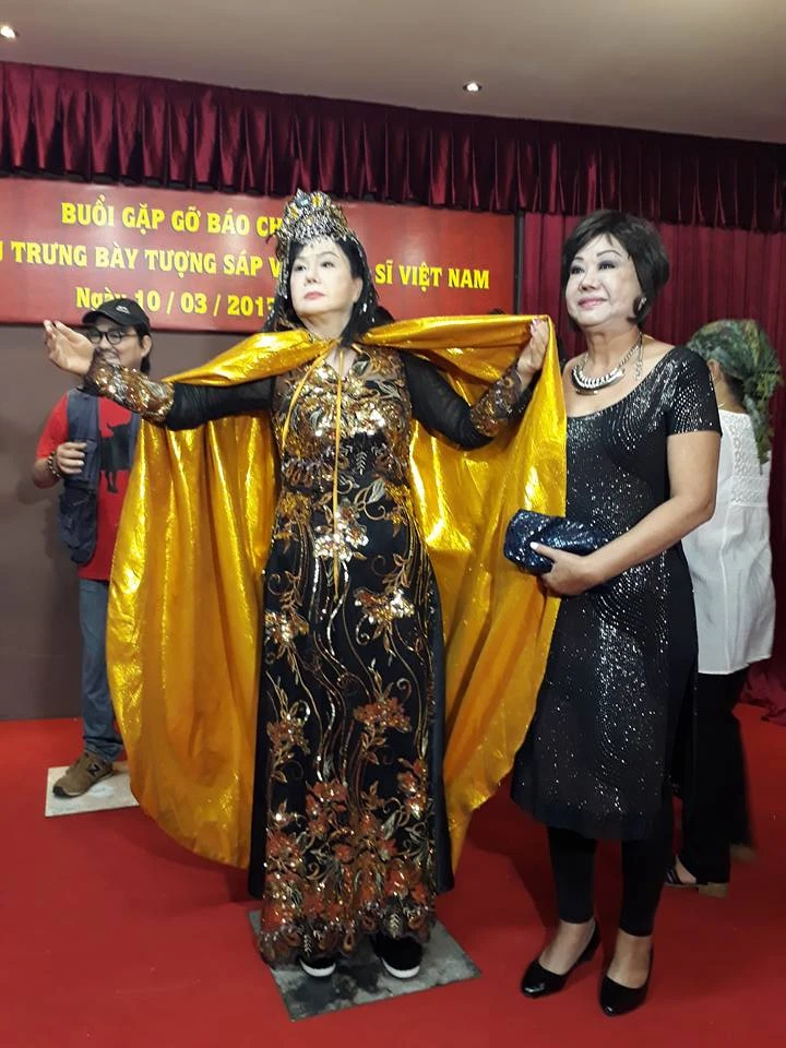 Nghệ sĩ vang bóng một thời Kiều Phượng Loan với tượng chị trong vai diễn để đời Nữ vương trong Truyền thuyết tình yêu.