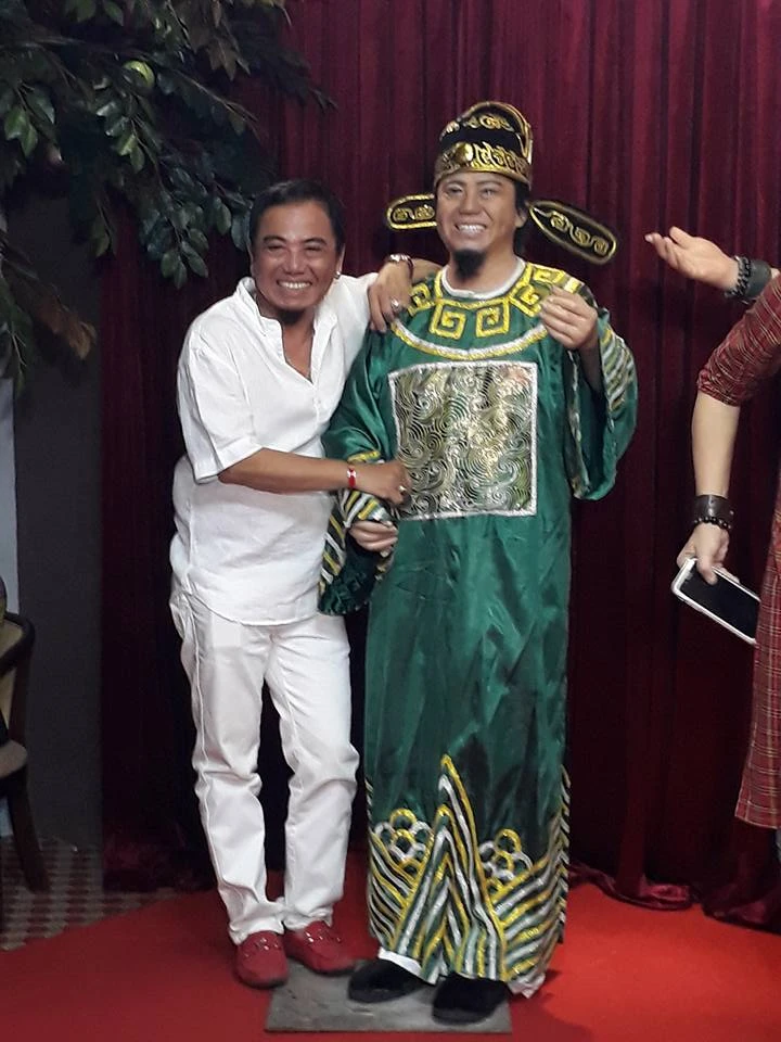 Nghệ sĩ hát bội Đinh Bằng Phi với tượng của nình.