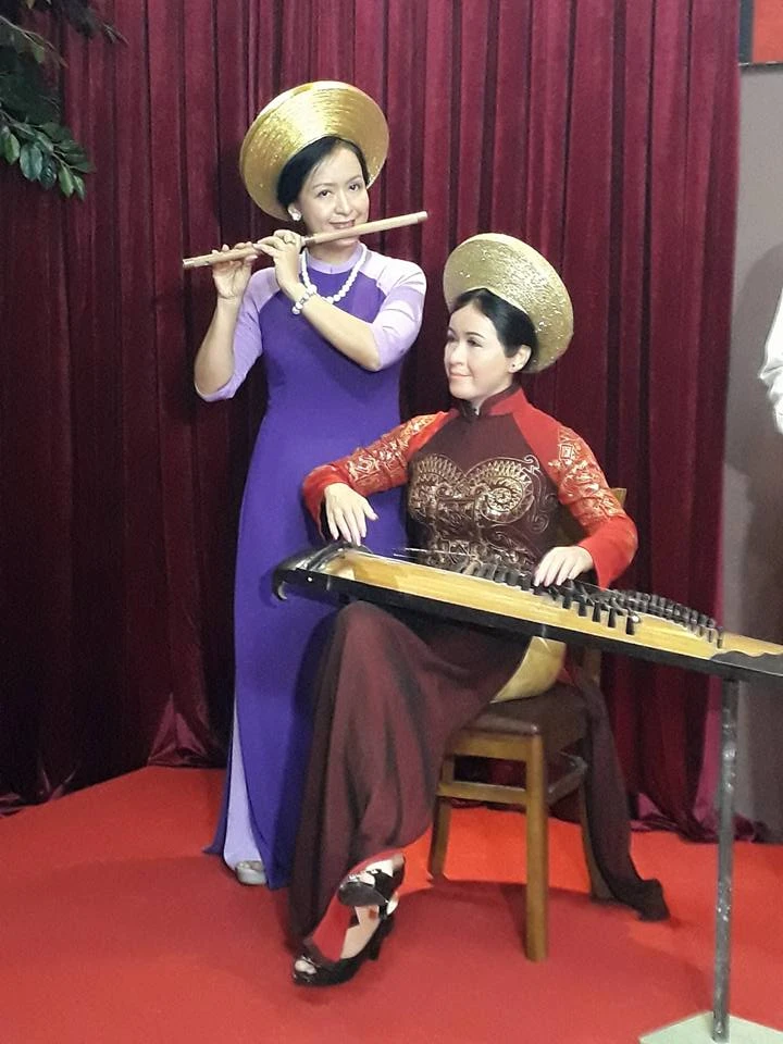 Nghệ sĩ đàn tranh Hải Phượng tạo hình với tượng.