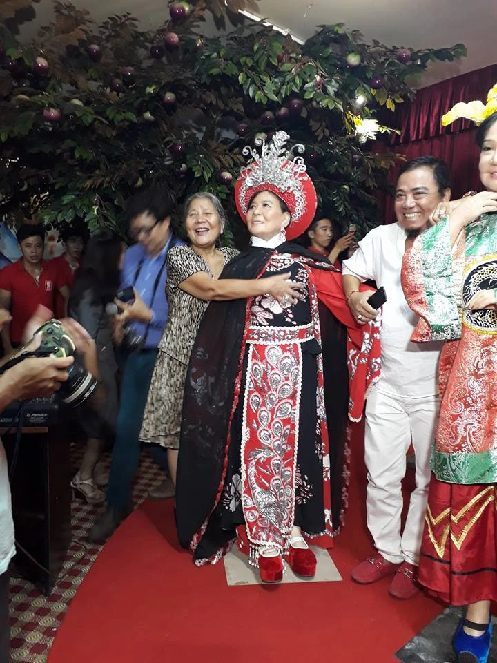 Nghệ sĩ Tú Trinh và tượng của chị trong nhân vật Thị Lộ của Bí mật vườn lệ chi.