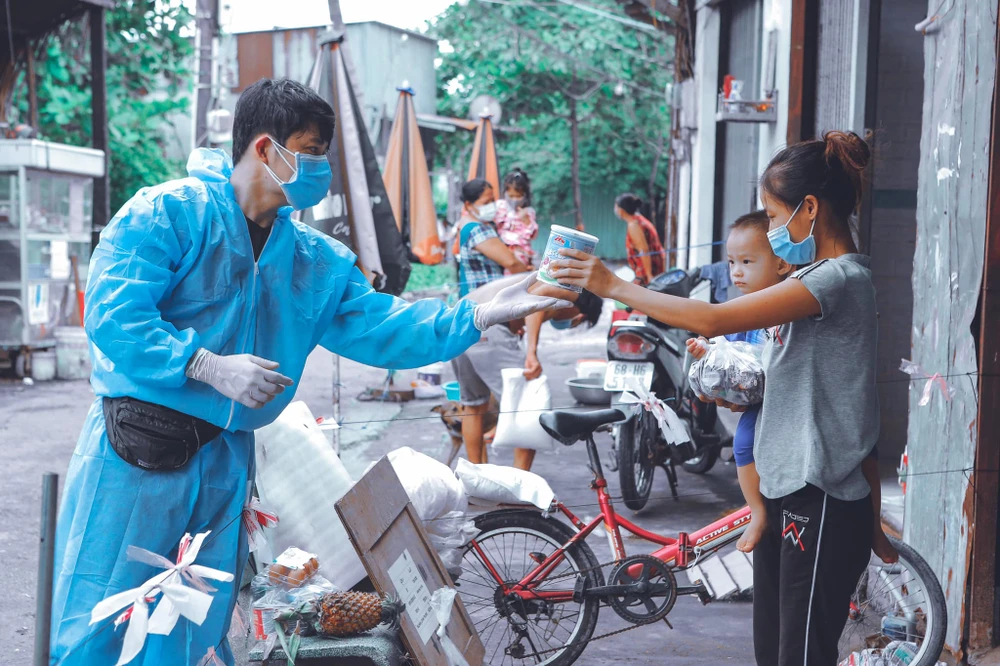 Nguyễn Văn Chung hỗ trợ người dân khó khăn trong mùa dịch bệnh căng thẳng tại TP.HCM. Ảnh: FBNV
