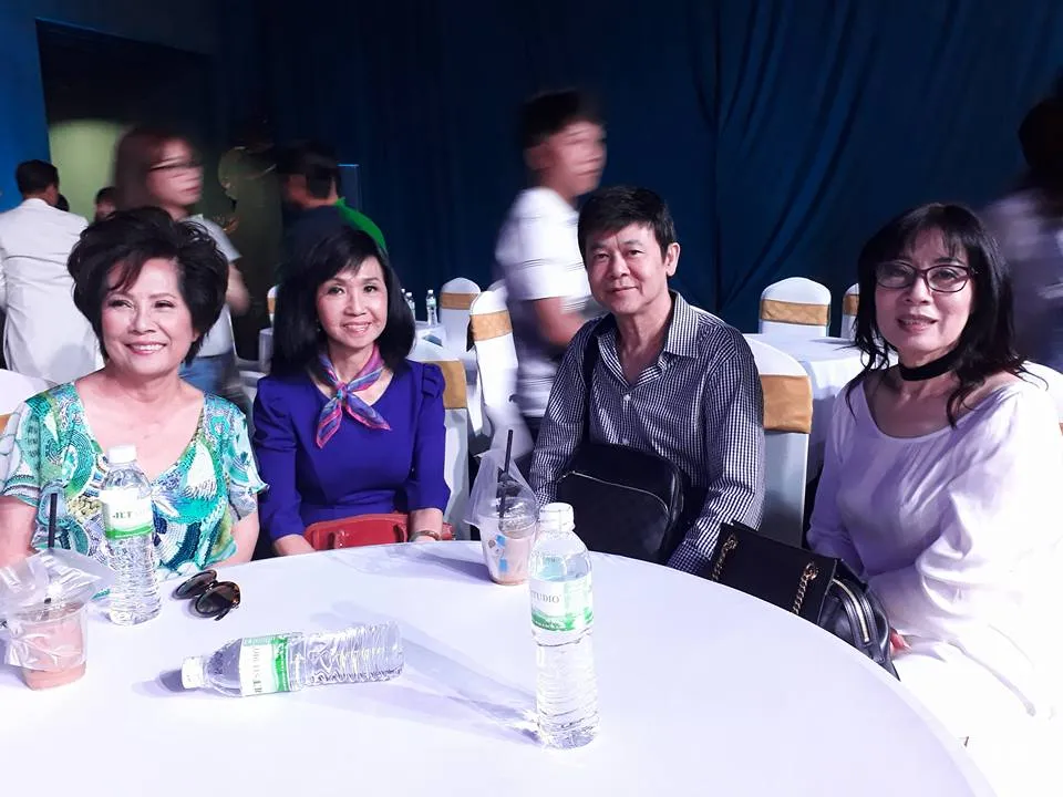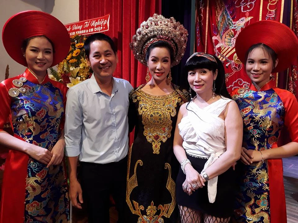 Các ca sĩ Phương Dung, Trang Mỹ Dung và vợ chồng danh ca Thái Châu trong lễ Giỗ Tổ tại Jet Studio.