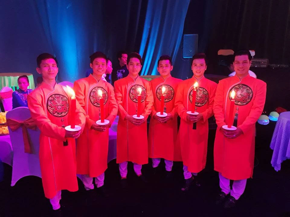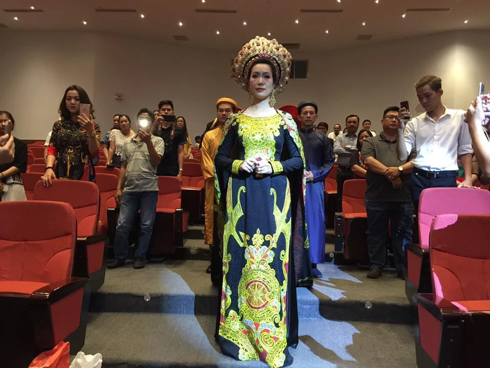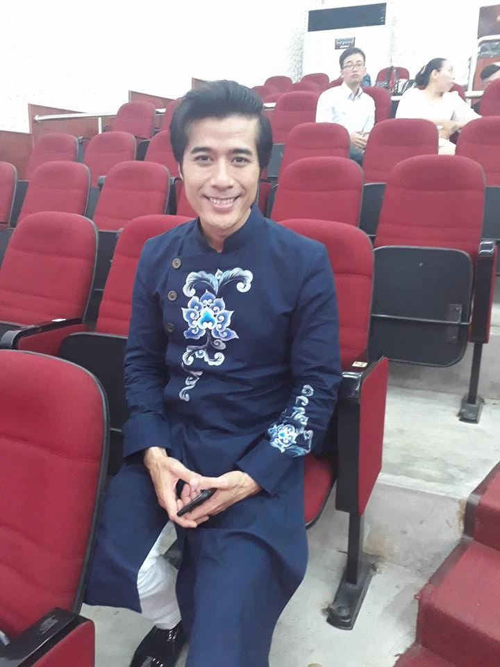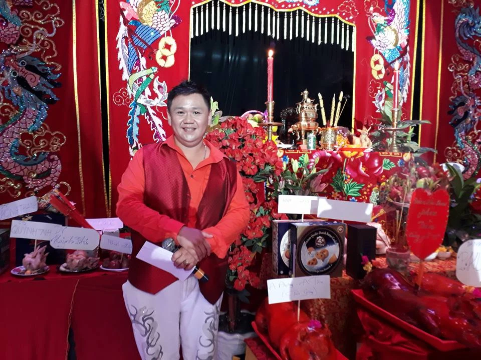 Quang Thảo ngồi chờ làm lễ ở Kịch Hoàng Thái Thanh.