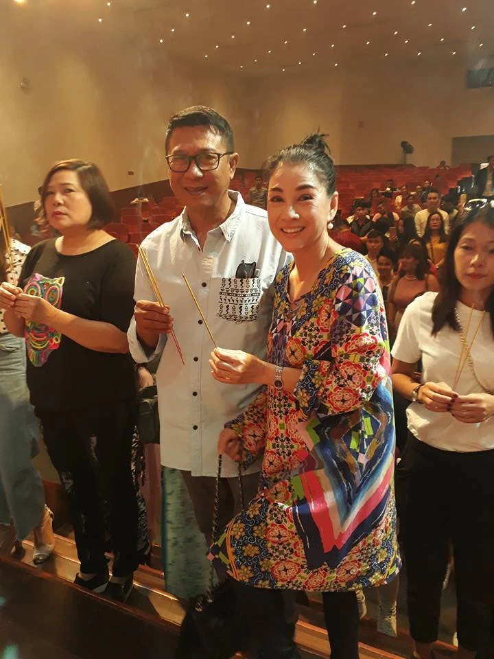 Vợ chồng Nguyễn Dương, Thu Tuyết đến thắp hương dâng Tổ ở Kịch TKC.