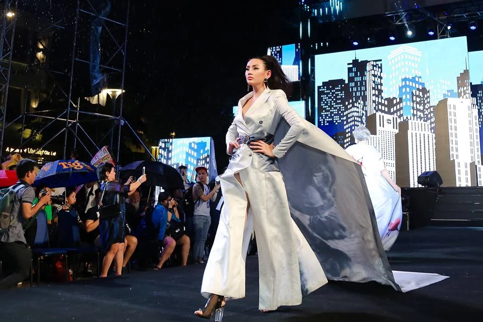 Hoa hậu Hải Dương diện trang phục lộng lẫy, làm vedette trên sàn diễn đêm khai mạc Lễ hội Thời trang và Công nghệ 2017.