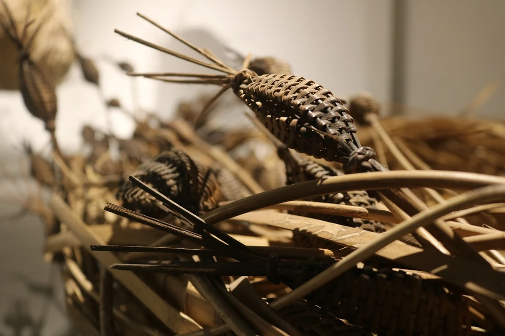 Triển lãm Nát giỏ còn bờ tre gồm 10 tác phẩm, là những sự vật bình dị, thân thuộc với mọi người. Đó là con cá trong chợ Trung Phước, là chiếc ghe đã bị rách thủng, là hòn đá trên đường, là chiếc vỏ ốc đã khô khốc… Chúng được tạo nên bởi các nguyên liệu cũng rất mộc mạc, gắn bó với nông dân Việt Nam từ bao đời nay là mây, tre.