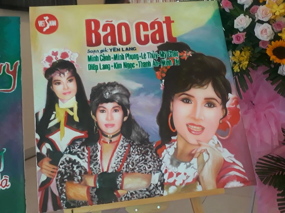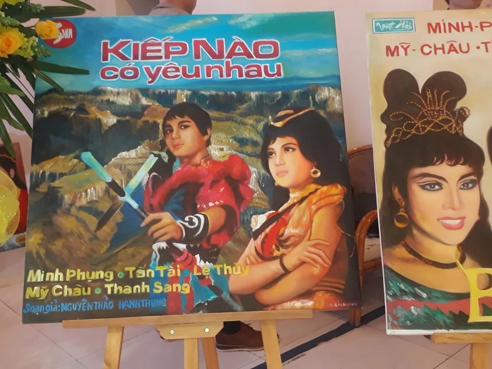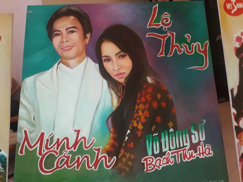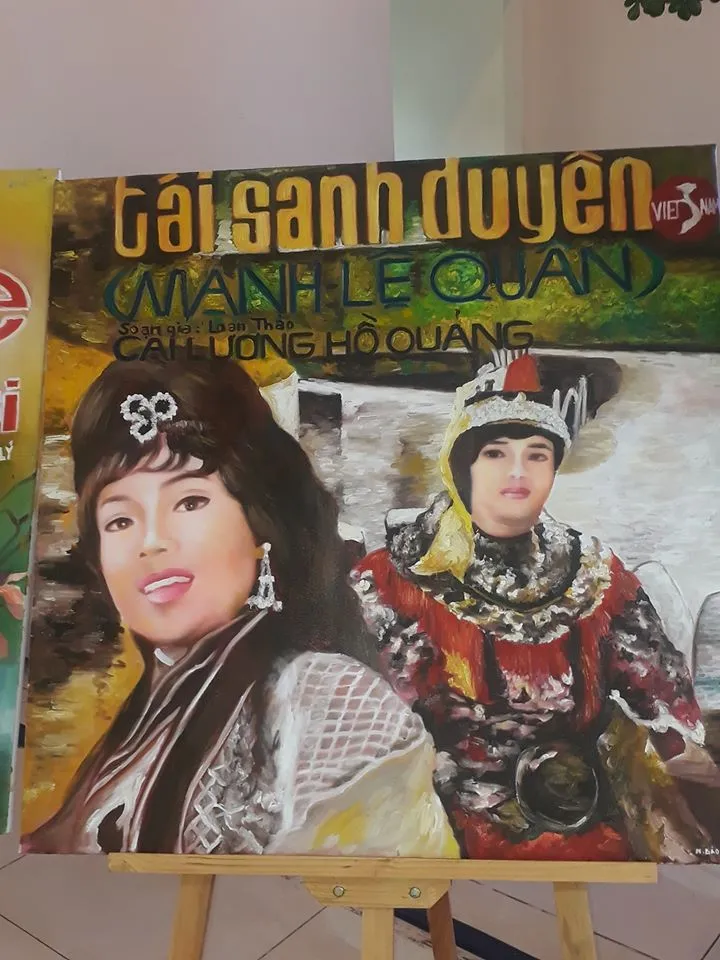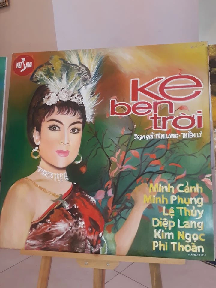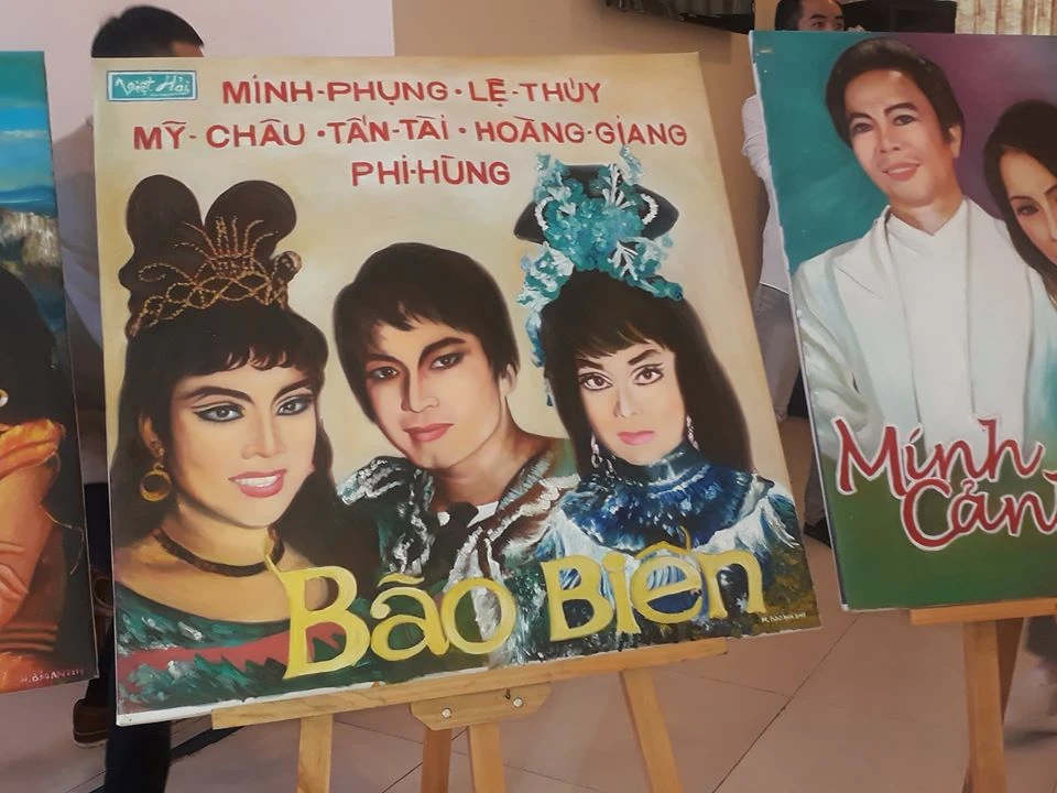 Tại đây, NSND Lệ Thủy đã trưng bày 10 bức tranh một nghệ sĩ trẻ hâm mộ vẽ lại những bìa đĩa có bà hát để tặng bà.