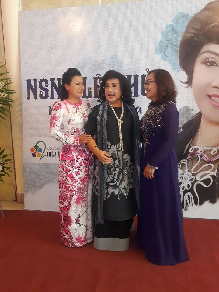 NSND Lệ Thủy với ca sĩ trẻ Lê Như và một khách mời.