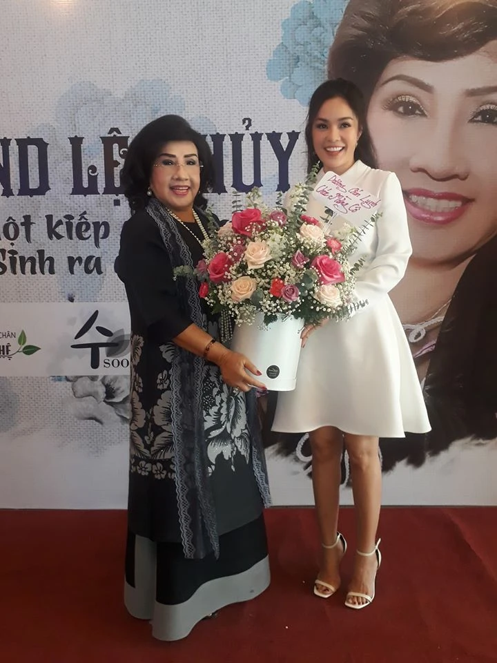 Diễn viên Dương Cẩm Lynh tặng hoa cho NSND Lệ Thủy.
