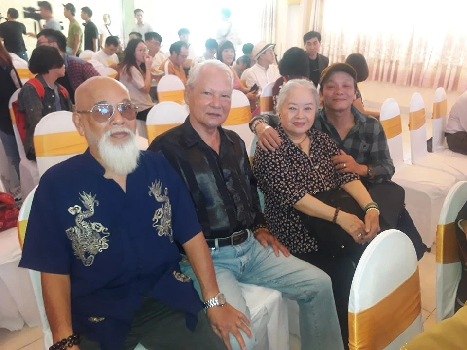 Từ trái qua, các nghệ sĩ Thành Chiến, Quốc Nhĩ, Thanh Nguyệt, soạn giả Hoàng Song Việt.