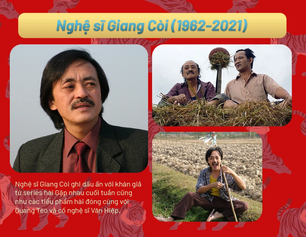 Nghệ sĩ Giang Còi ghi dấu ấn với khán giả từ series hài Gặp nhau cuối tuần cũng như các tiểu phẩm hài đóng cùng với Quang Tèo và cố nghệ sĩ Văn Hiệp. Ông có khả năng ứng biến linh hoạt, đa tính cách, hài hước bởi những vai xã trưởng, lý trưởng ẩm ương.