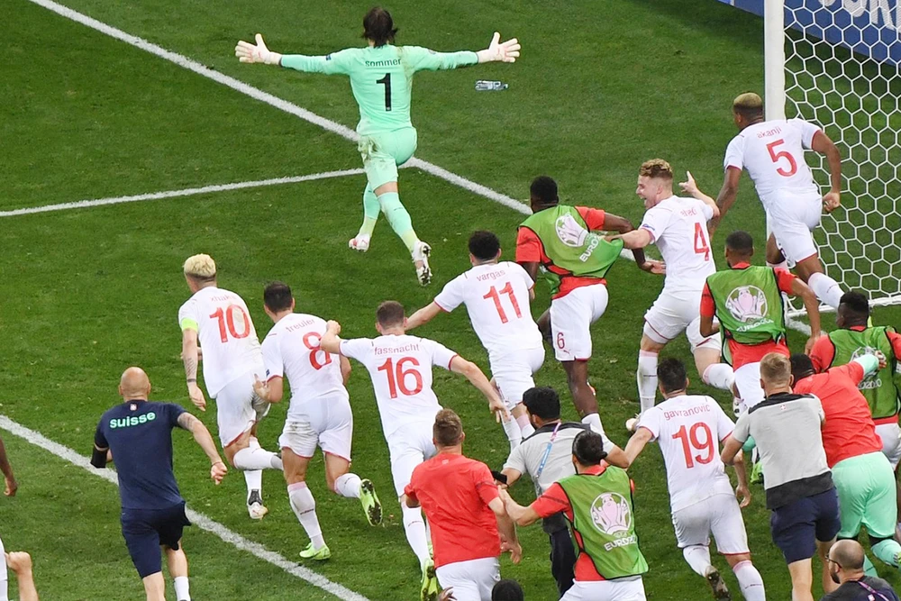 Thụy Sĩ với tinh thần chiến đấu không mệt mỏi đã được đền đáp xứng đáng với chiến thắng nghẹt thở vào vòng tứ kết. Ảnh: UEFA