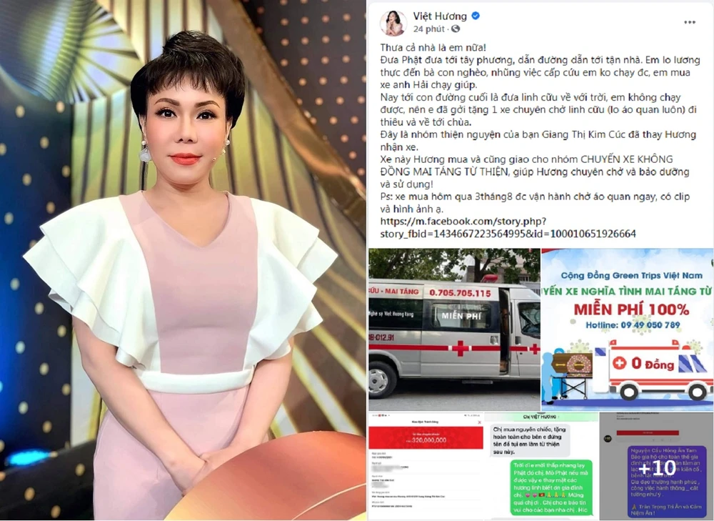 Chiều nay, 4-8, trên trang cá nhân nghệ sĩ Việt Hương cho biết nữ nghệ sĩ cùng ông xã quyết định tặng thêm một chiếc xe chở linh cữu người mất cho nhóm “Chuyến xe 0 đồng mai táng từ thiện”.
