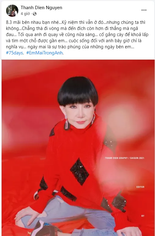 Trên trang cá nhân, NSND Thanh Điền gây xúc động khi gửi những nhớ nhung đến người vợ quá cố- NSƯT Thanh Kim Huệ: "8-3 mãi bên nhau bạn nhé. Kỷ niệm thì vẫn ở đó... nhưng chúng ta thì không. Chẵng thà đi vòng mà đến đích còn hơn đi thẳng mà ngã đau. Tối qua anh đi quay về cũng nửa sáng, cố gắng cày để khoả lấp và tìm một chỗ được gần em, cuộc sống đối với anh bây giờ chỉ là nghĩa vụ ngày mai là sự trào phúng của những ngày bên em" .