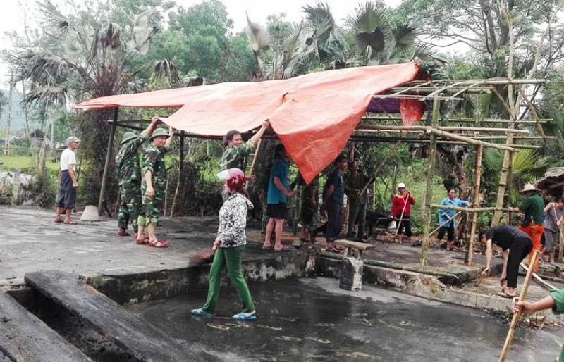 Sáng 1-4, ông Bùi Đình Quang - Chủ tịch UBND xã Hòa Hải (huyện miền núi Hương Khê, Hà Tĩnh) cho biết đã huy động người dân cùng bộ đội dựng lại căn nhà tạm cho gia đình ông Nguyễn Văn Bình (ở xóm 3, xã Hòa Hải) - bị cháy hết nhà và tiền.