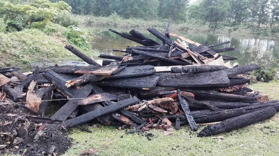Người dân đã chạy đến dùng các dụng cụ múc nước dập lửa, cứu nhà. Tuy nhiên, do thời tiết hanh khô, lửa đã lan sang cháy cả nhà chính bằng gỗ hai gian. Vợ chồng ông Bình nghe người dân gọi báo tin, hốt hoảng chạy về. Ông Bình hô hoán nhờ mọi người đổ nước vào ngăn tủ - nơi ông đang cất 10 triệu đồng vừa bán gà nhưng tất cả bất lực trước đám cháy. Lửa đã thiêu cháy rụi toàn bộ nhà của vợ chồng ông Bình.