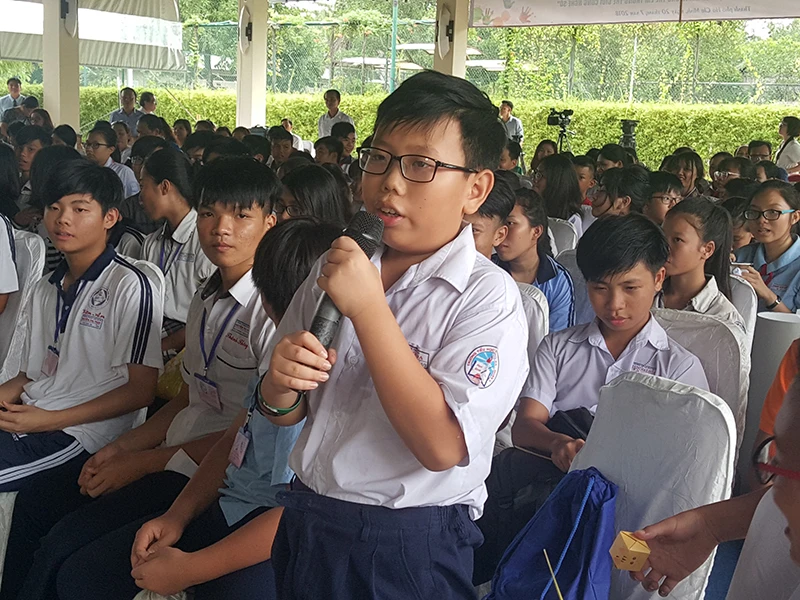 Cậu học sinh NĐM, 11 tuổi, bày tỏ: “Cha mẹ hay chê trách con nít ham vui, chơi game quá nhiều mà không nhận ra các cha mẹ cũng có trách nhiệm chính trong đó. Hãy dành thời gian cho con cái nhiều hơn, giao tiếp nhiều hơn với tụi con. Hãy tắt công nghệ để bật tương lai”. Câu nói của M. được hàng trăm học sinh có mặt vỗ tay nhiệt liệt.