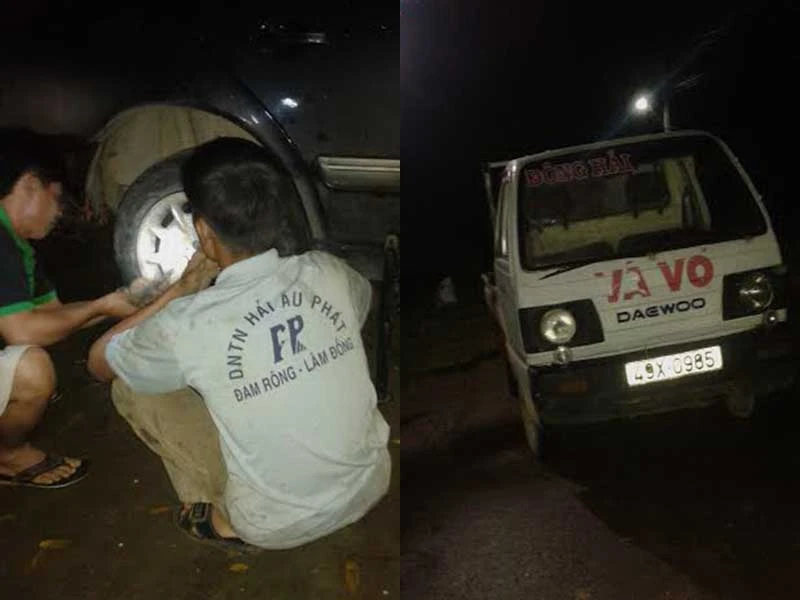 Khoảng 20 phút sau, từ phía xa trên con đường mà chúng tôi đang gặp nạn đã lóe sáng ánh đèn xe mang biển số 49X… tiến gần lại xe chúng tôi. Chưa đầy 30 phút khi vá vỏ và hoàn thành công việc thay bánh xe, anh Phú vui vẻ và bắt chuyện với chúng tôi. Anh cho biết: “Cái nghề nó đã gắn với cái nghiệp rồi chị ạ, điện thoại cứ phải để 24/24 giờ vì biết đâu chừng có khách bị sự cố đêm khuya. Lúc ngặt họ mới cần đến mình, nên dù đang quấn chăn ấm ngủ ngon cũng phải vùng dậy để đi vá vỏ. Vừa có tiền vừa giúp người thì cũng thấy ấm lòng”. Xong việc, anh Phú đưa ra giá vá vỏ với giá rẻ bất ngờ nên đoàn chúng tôi đã bồi dưỡng thêm cho anh ít đồng cà phê vì sự tận tâm và thân thiện, vui vẻ. Giả sử lúc ấy anh Phú có lấy giá cao gấp nhiều lần chừng đó, chúng tôi cũng thấy xứng công.