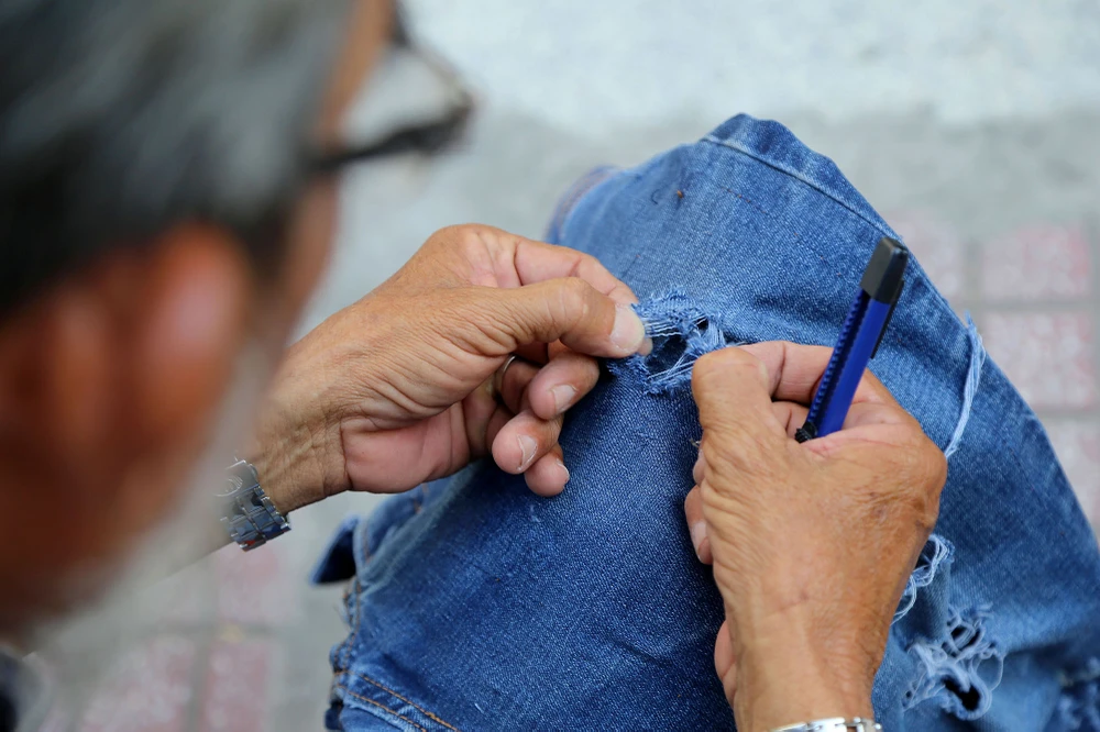 Ông Viễn cho biết việc xé quần này tuy đơn giản nhưng không phải ai cũng làm được. Xé làm sao để có điểm nhấn, ấn tượng, để trông chiếc quần mới mẻ hơn. Vì thế tùy yêu cầu của khách, ông Viễn lại cho ra một tác phẩm không ai giống ai.