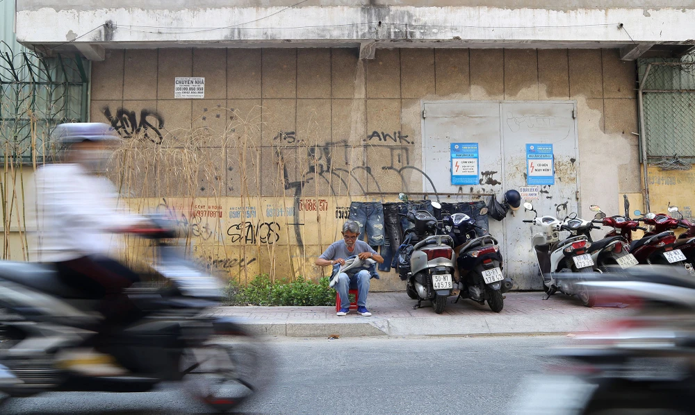 Suốt gần 30 năm nay, cứ 3 giờ chiều, ông từ nhà ở quận Bình Tân chạy xe đến đường Hồ Xuân Hương để hành nghề. Chỉ một chiếc ghế nhỏ đặt trên vỉa hè, một cây dao rọc giấy, ông Viễn bắt đầu thỏa sức sáng tạo ra những kiểu quần jeans độc đáo.