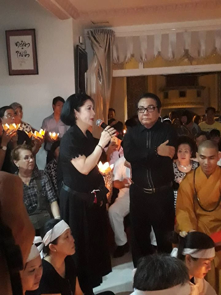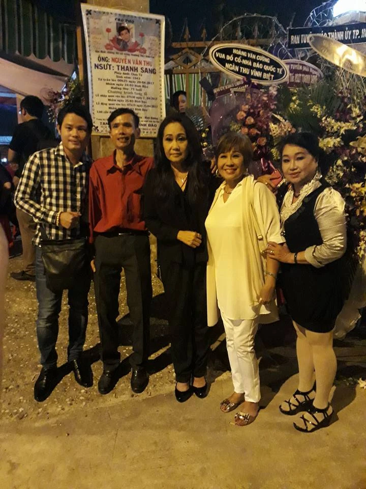 Nghệ sĩ Thanh Nguyệt thẫn thờ cầm hoa đăng. Bà có mặt nhiều ngày trong đám tang nghệ sĩ Thanh Sang và luôn thẫn thờ với nỗi đau thương tiếc ông.