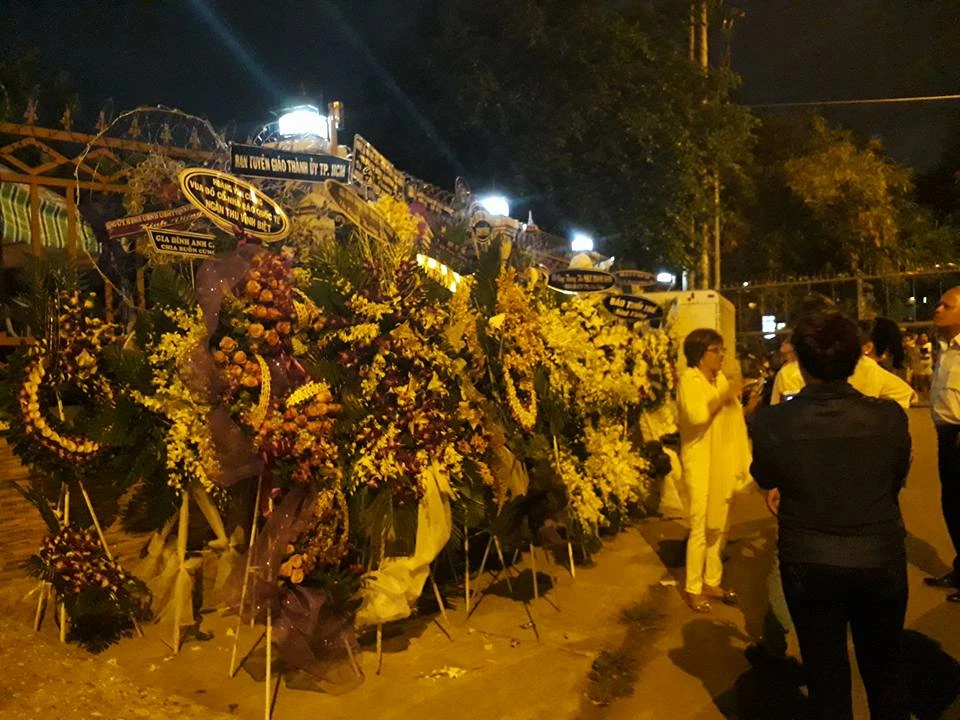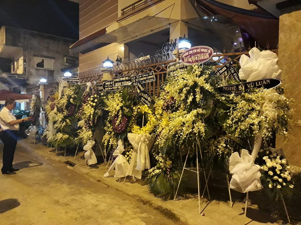 Hoa viếng xếp hai hàng dài dọc bờ rào nhà nghệ sĩ Thanh Sang.