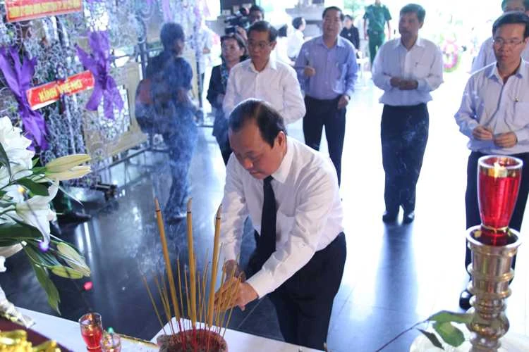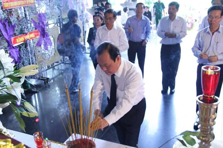 Đồng chí Lê Thanh Hải - Bí thư thành ủy TP.HCM đến viếng và chia buồn cùng gia đình nhạc sĩ Phan Huỳnh Điểu. Ảnh: Hoàng Giang