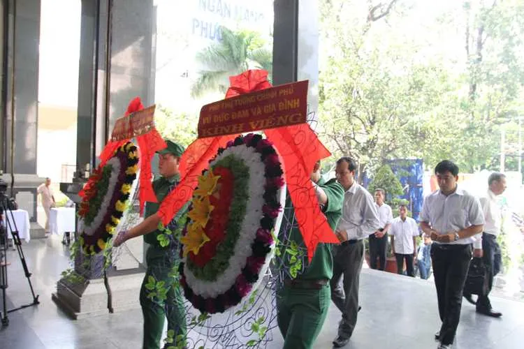 Vòng hoa phân ưu của lãnh đạo nhà nước gửi đến gia đình hai nhạc sĩ