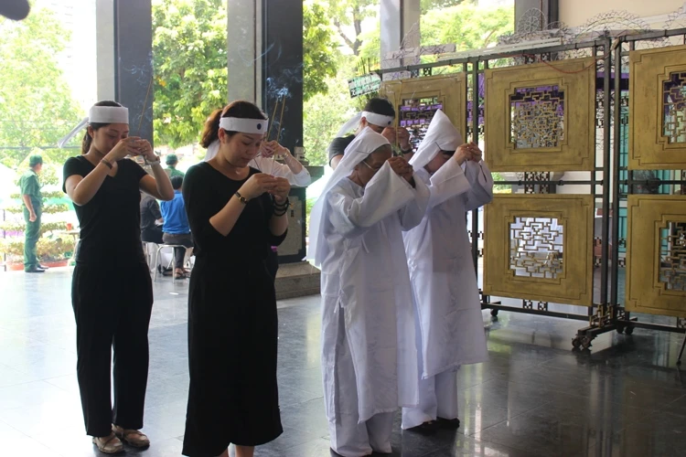 Gia đình nhạc sĩ Phan Nhân viếng nhạc sĩ Phan Huỳnh Điểu. Ảnh: Thanh Tuyền