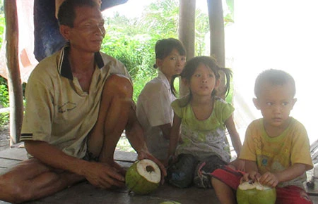 Không phiêu bạt như anh Trong, vợ chồng anh Nguyễn Văn Bình - hàng xóm quen gọi là Bình mù (vì anh mù cả hai mắt) “cắm câu” ở gần sông Tha La (xã Tân Tiến, huyện Tân Châu). Tuy không đến nỗi ngặt nghèo nhưng hoàn cảnh của anh Bình cũng rất khốn khó. Anh Bình bị mù, hằng ngày vẫn đi cào hến, trèo dừa mướn để nuôi gia đình có tới bốn đứa con nheo nhóc. Vợ anh Bình hay đau ốm, chỉ có thể làm phụ chồng vài việc lặt vặt. Gia đình anh thường xuyên đứt bữa nên những đứa trẻ nhà anh đều còi cọc.