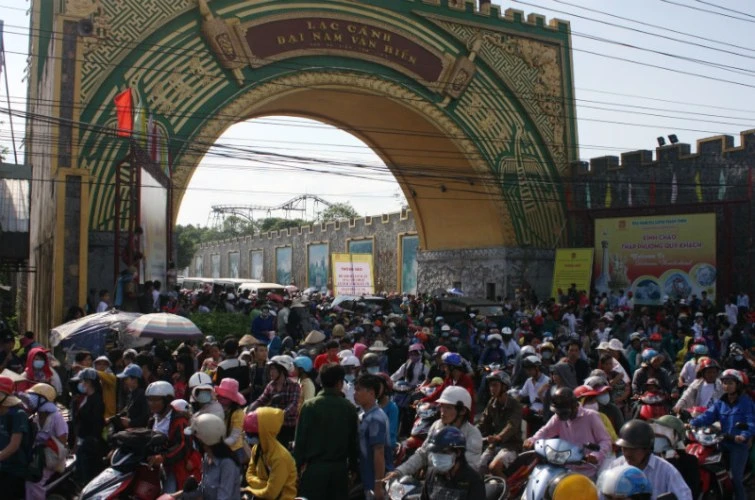Theo quan sát của phóng viên, tại khu du lịch Đại Nam tình trạng quá tải khiến dòng người chỉ có thể nhích từng bước chân. Khách du lịch chen lấn, xô đẩy khiến các nhân viên của khu du lịch phải làm việc hết công suất. Đến chiều cùng ngày, lượng khách vẫn đổ về khu du lịch rất đông, nhiều quán nước, quán ăn đã bị quá tải và hết đồ bán. Mặc dù công ty Cổ phần Đại Nam đã lập thêm bãi giữ xe mới, nhưng ngay lập tức hết sạch chỗ.