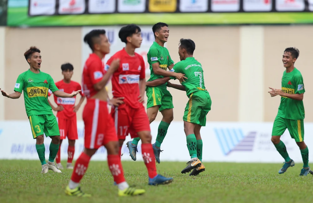 Niềm vui ngây ngất sau khi ghi bàn thắng và nỗi buồn tê tái của cầu thủ sinh viên. Ảnh: ANH THÔNG.