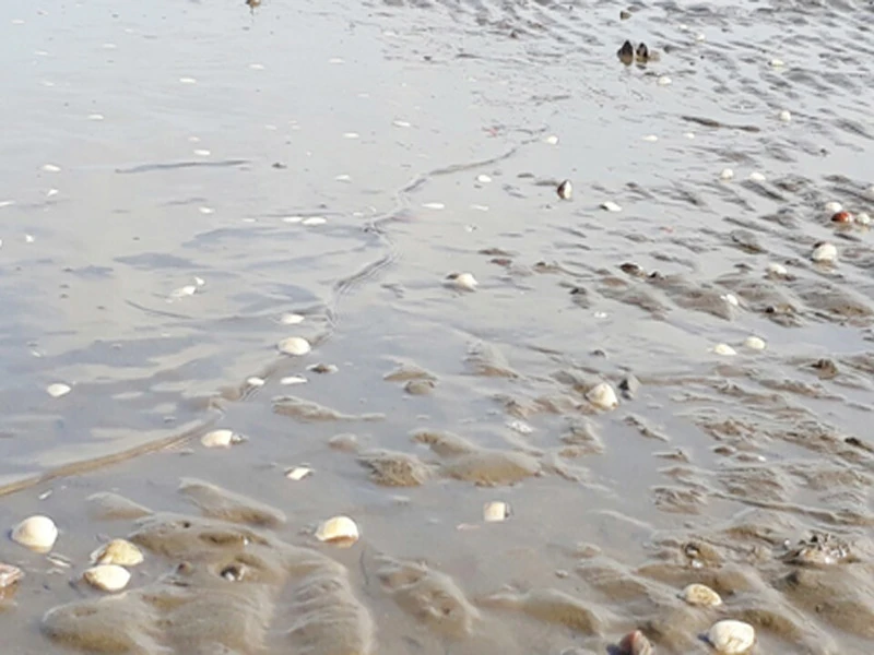 Nghêu chết hàng loạt ngoài bãi biển tại các HTX nuôi nghêu ở Bến Tre. Ảnh: ĐH
