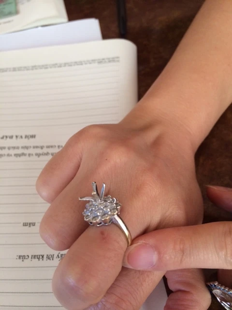 Thời điểm bà N trình báo, cơ quan công an thu giữ chiếc nhẫn còn đeo trên tay bà N để điều tra, thì mặt trên chiếc nhẫn có 4 thanh dùng để đính viên kim cương, trong đó có 2 thanh đã bị cong, và viên kim cương biến mất theo trình báo của bà N.