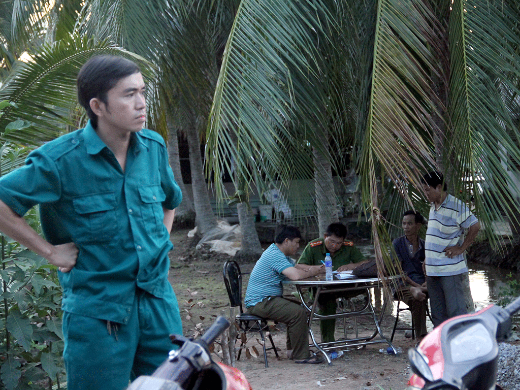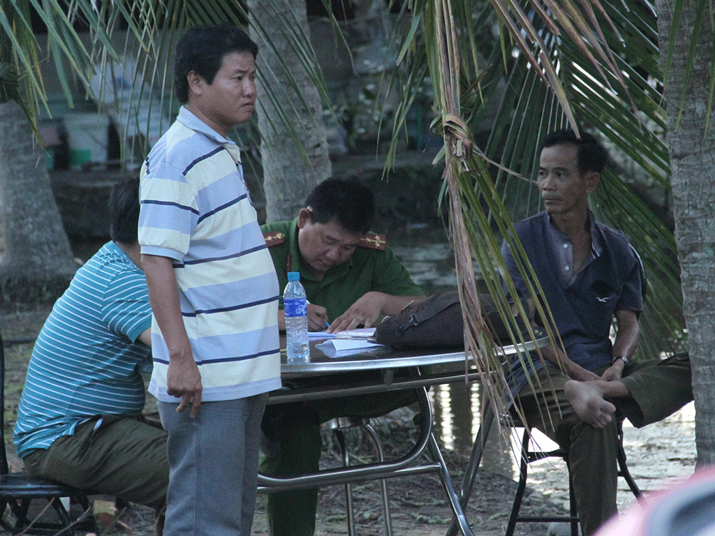 Người hàng xóm vào sân nhà thì phát hiện ông Hoàng bị nhiều vết thương, mất nhiều máu, đang ngồi ở gốc dừa; vợ ông Hoàng gục chết trên vũng máu ở gian bếp.