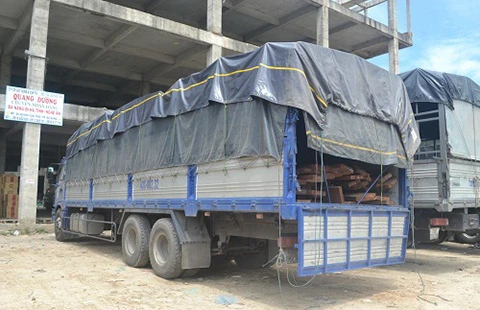 Qua đó, phát hiện hơn 60 phách gỗ căm xe (thuộc nhóm 2) được cất giấu phía sau thùng xe.