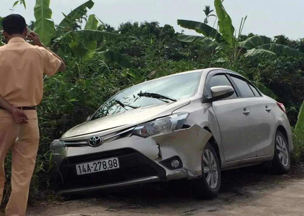 Cách địa điểm phát hiện thi thể anh H. khoảng 14 km, tại khu vực gần chân cầu Hợp Thành (xã Thanh Thủy, huyện Thanh Hà), người dân thấy ô tô Toyota Vios 14A-0278.98 trong tình trạng bị đâm móp phần đầu, hỏng hóc.