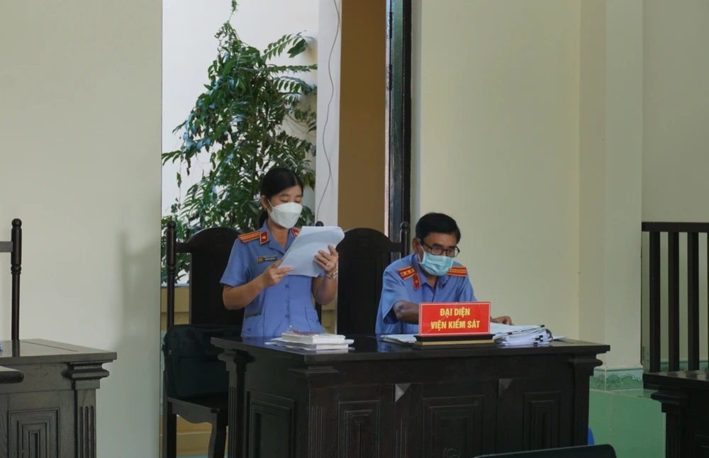 Đại diện VKSND huyện Bình Tân đọc bản luận tội các bị cáo. Ảnh: HD