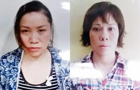Đối tượng Phạm Thị Nguyệt (trái) và Nguyễn Thị Thanh Trang tại cơ quan công an. (Ảnh do cơ quan công an cung cấp)