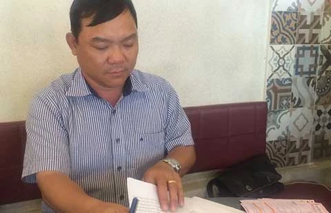 Ông Nguyễn Văn Hải, cha của bị án Nguyễn Văn Vĩnh, cùng hồ sơ kêu oan cho con. Ảnh: MINH HOÀNG