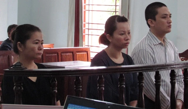 Từ trái qua, các bị cáo Thủy, Linh và Khánh tại phiên tòa ngày 28-6. Ảnh: N.NAM